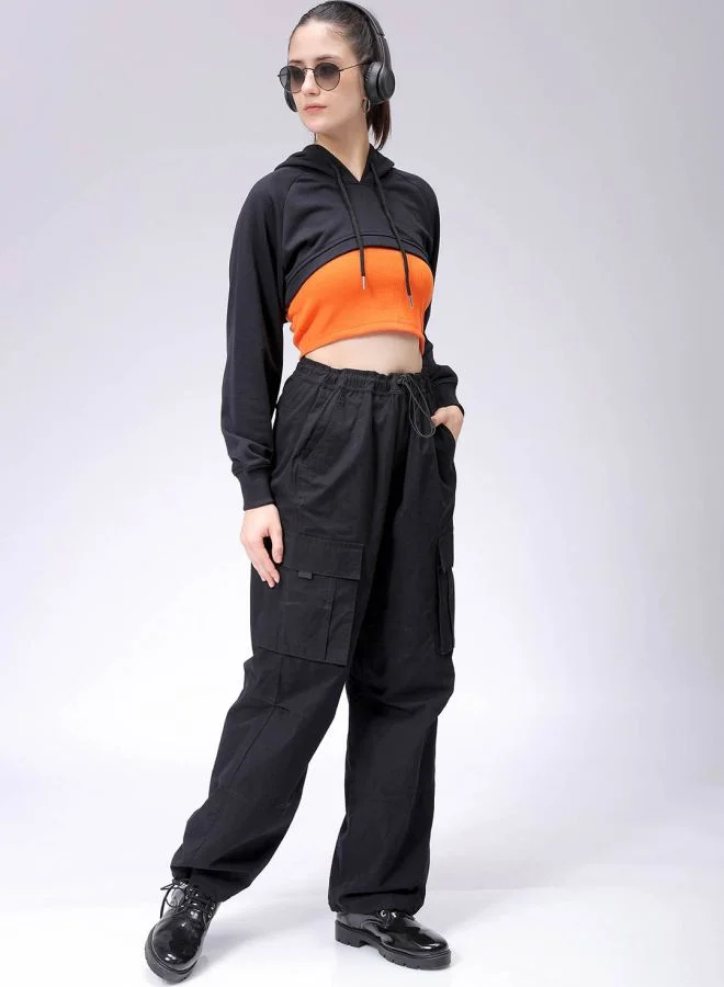 Pair this cropped hoodie with high-rise joggers or wide-leg trousers for a stylish, balanced silhouette. Add chunky sneakers and a sleek crossbody bag for a sporty-meets-streetwear look. For chill days, layer over a longline tank or bralette for a peekaboo contrast. Keep accessories minimal—think hoop earrings or a cap—for a clean and confident outfit. It's a versatile staple that effortlessly blends comfort with everyday cool.