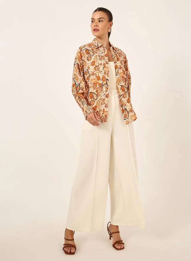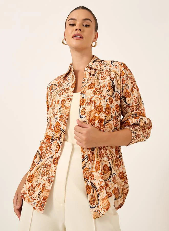 ستايلي قميص بقصة عادية وأكمام مطبوعة بيزلي