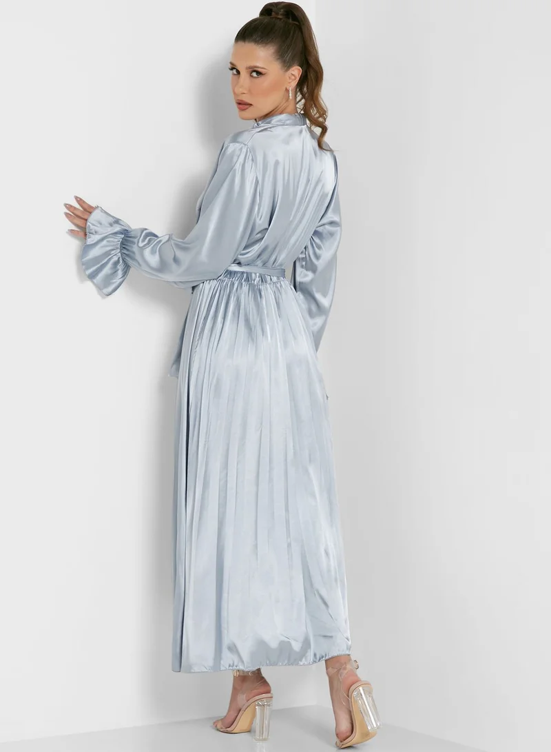 يمنحك هذا الفستان الساتان المتألق مظهراً أنيقاً وعصرياً. مثالي لقضاء أمسية في المدينة.