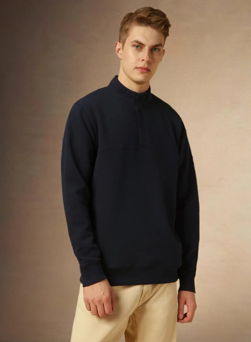 دينيس لينغو سويت شيرت رجالي سادة بقصة عادية من مزيج البوليستر بلون كحلي