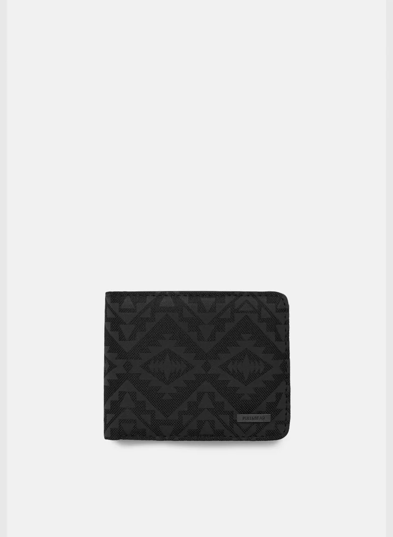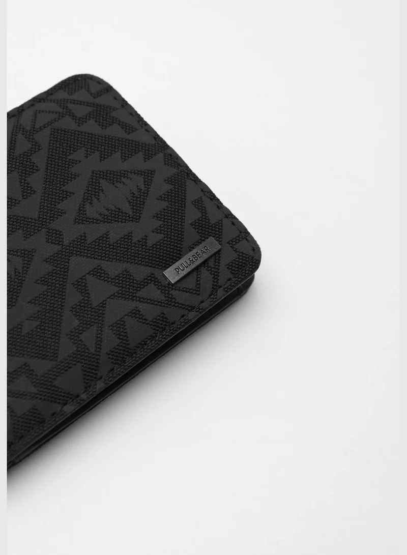 محفظة سوداء بتصميم هندسي وتفصيل بطاقة بشعار Pull&Bear.