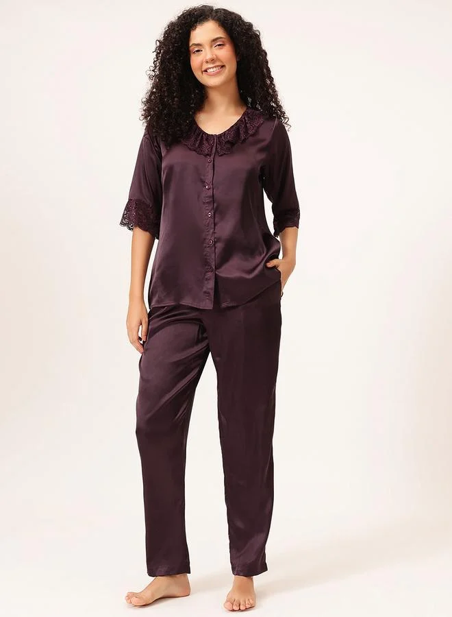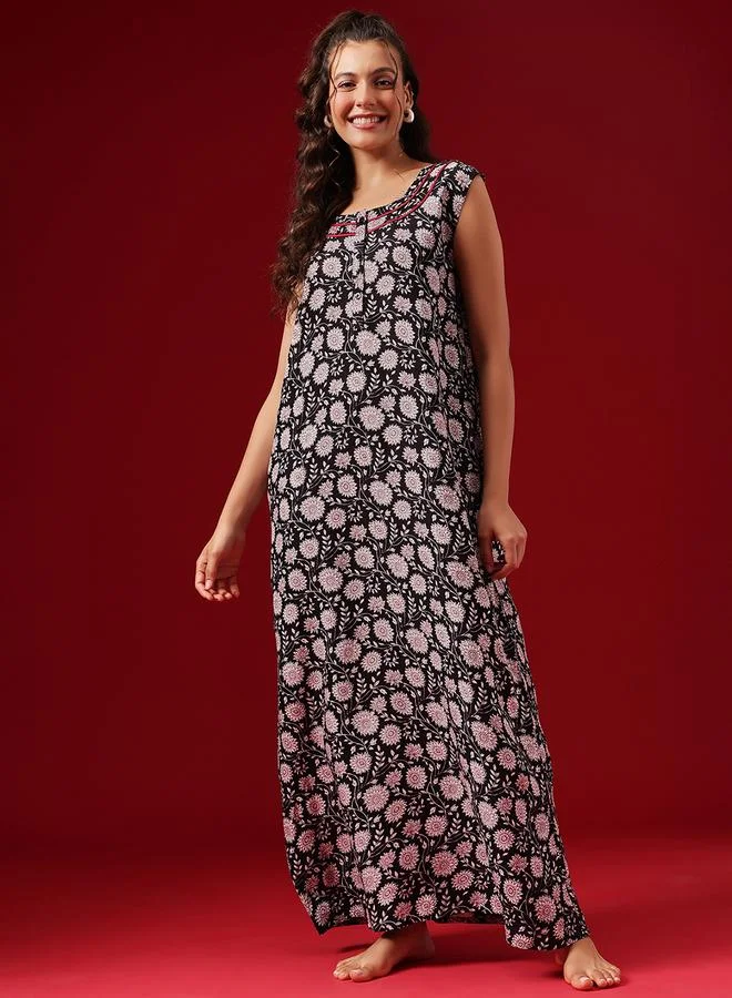 Clovia Floral Print Short Sleeve Shirt and Pyjama Set