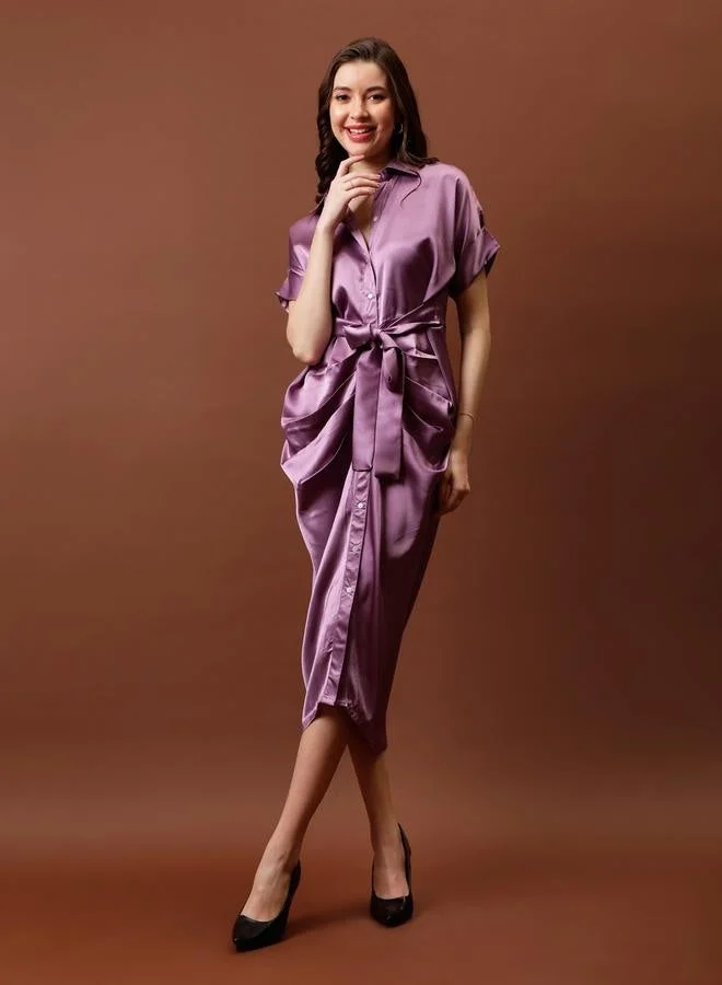 Athena Satin Shirt Midi Dress with Pleated Detail