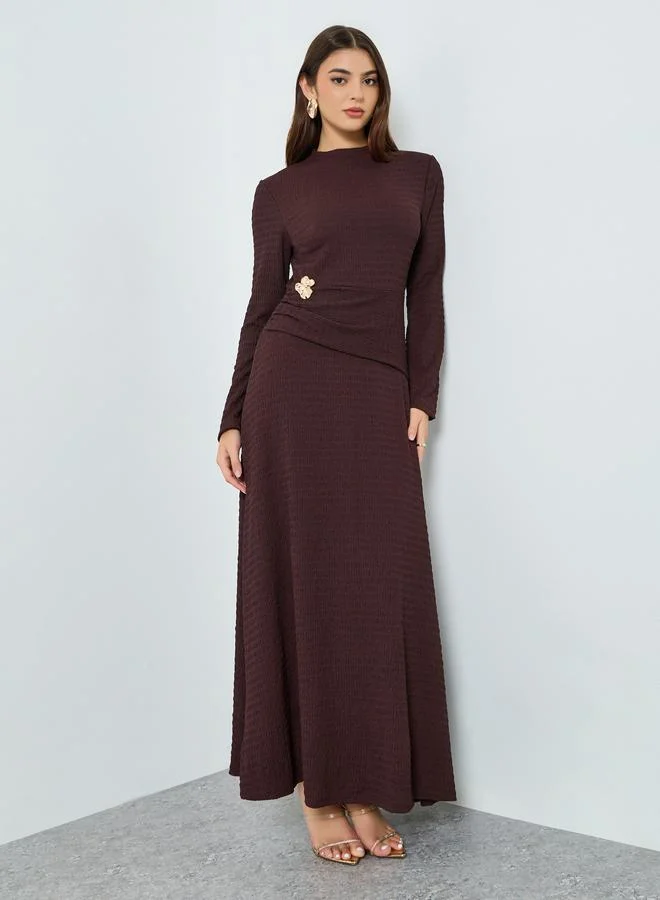 Women Brown Texture Knitted Buckle Detail Maxi Dress