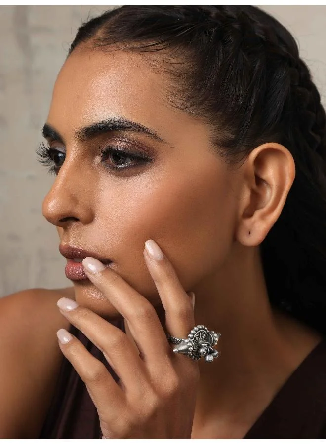 trueBrowns Silver Tone Ghungroo Ring