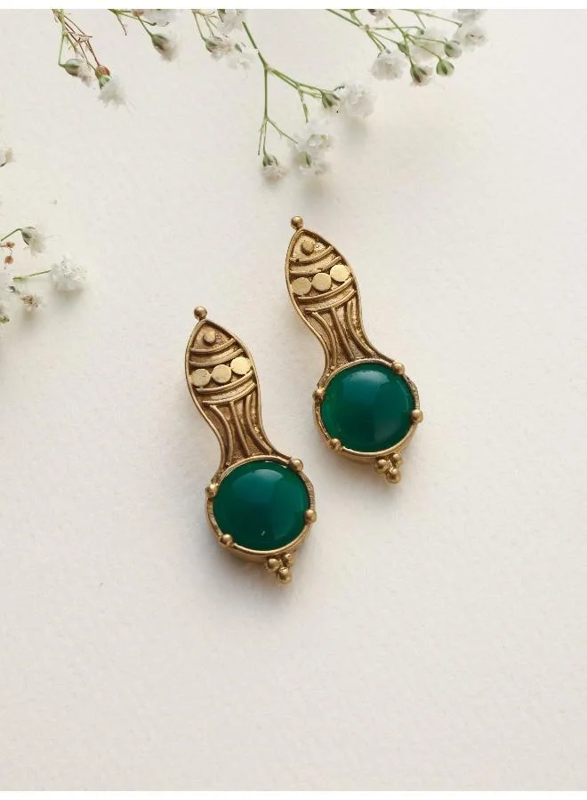 trueBrowns Brass Green Stone Abstarct Earrings