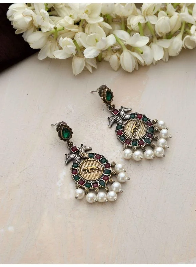 trueBrowns Silver Tone Chandbali Earrings