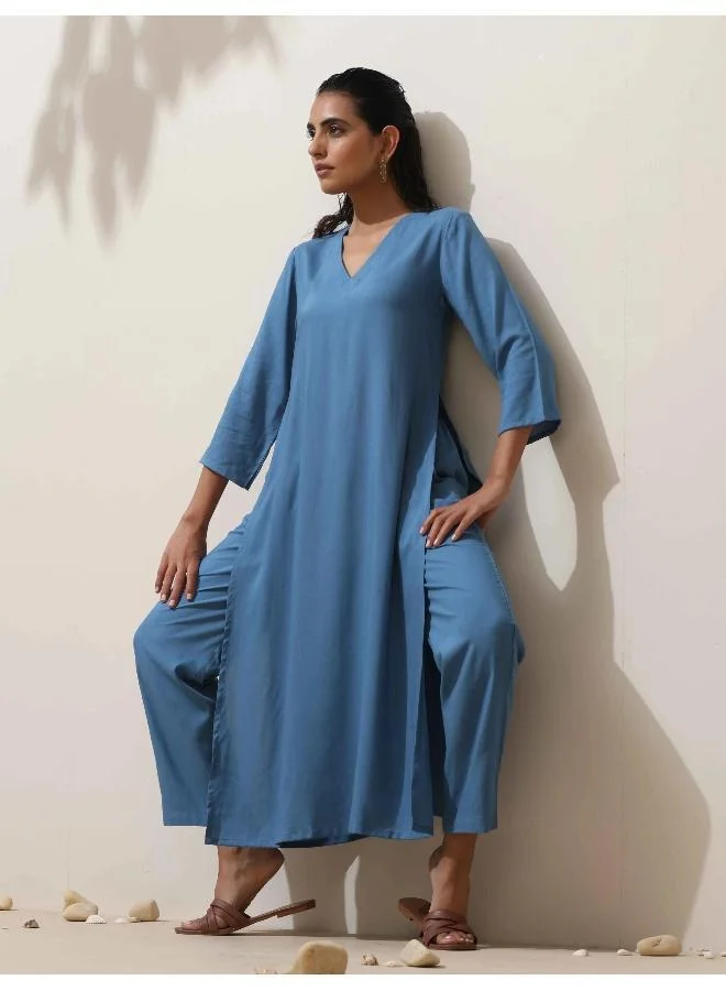 trueBrowns Blue Viscose Kurta Pant Set