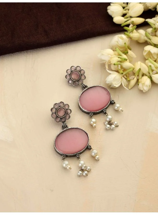 trueBrowns Silver Tone Pink Stone Dangle Earrings