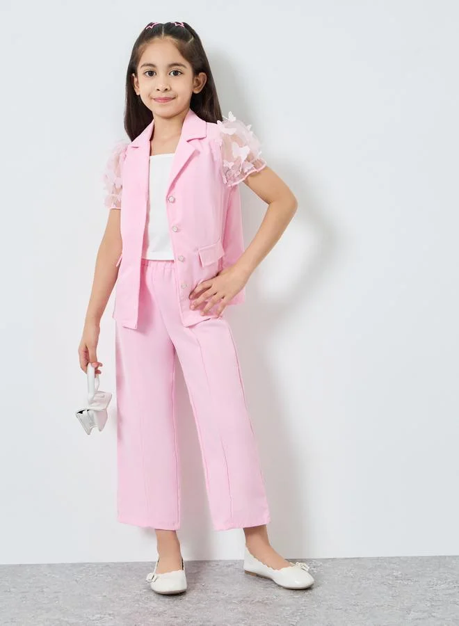 3-Piece Butterfly Applique Coat, Cami and Pants