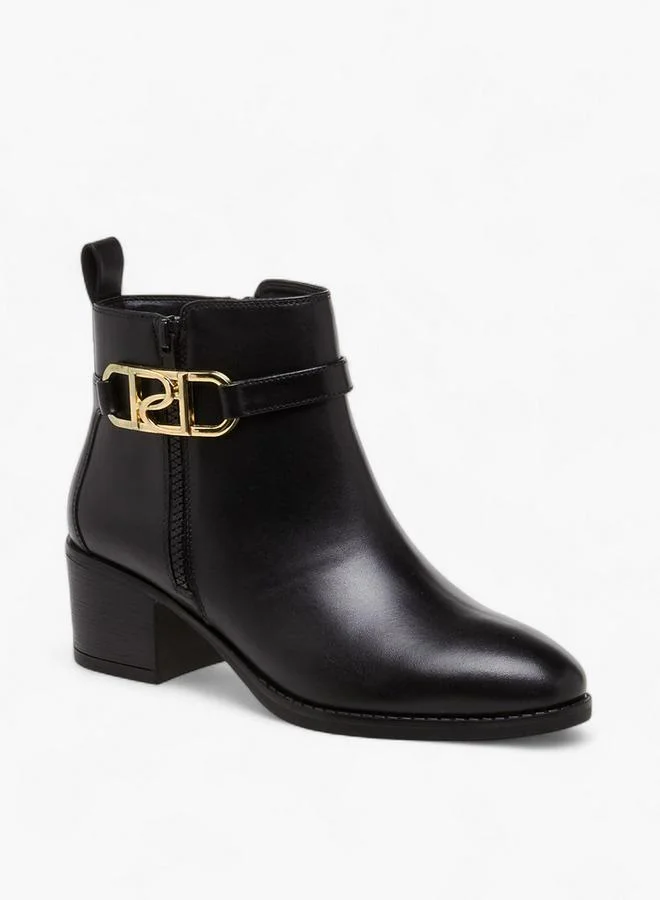 These elegant buckle detail ankle boots offer a timeless addition to your footwear collection. Crafted for both style and comfort, these women's boots feature a secure side zipper closure for ease of wear. The block heel provides stable elevation, making them suitable for various occasions. Pair these versatile ankle boots with trousers or a dress for a refined look.