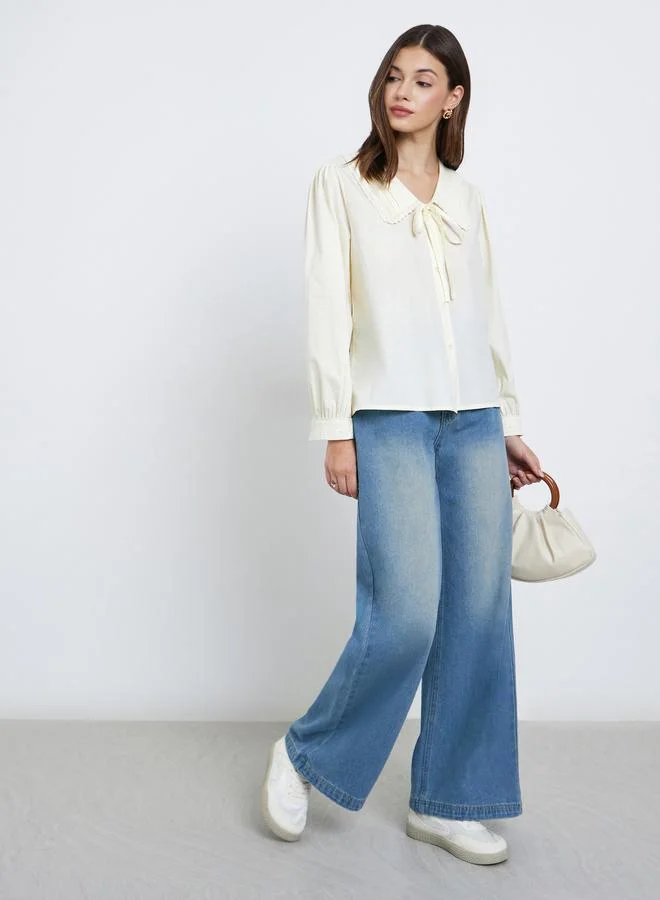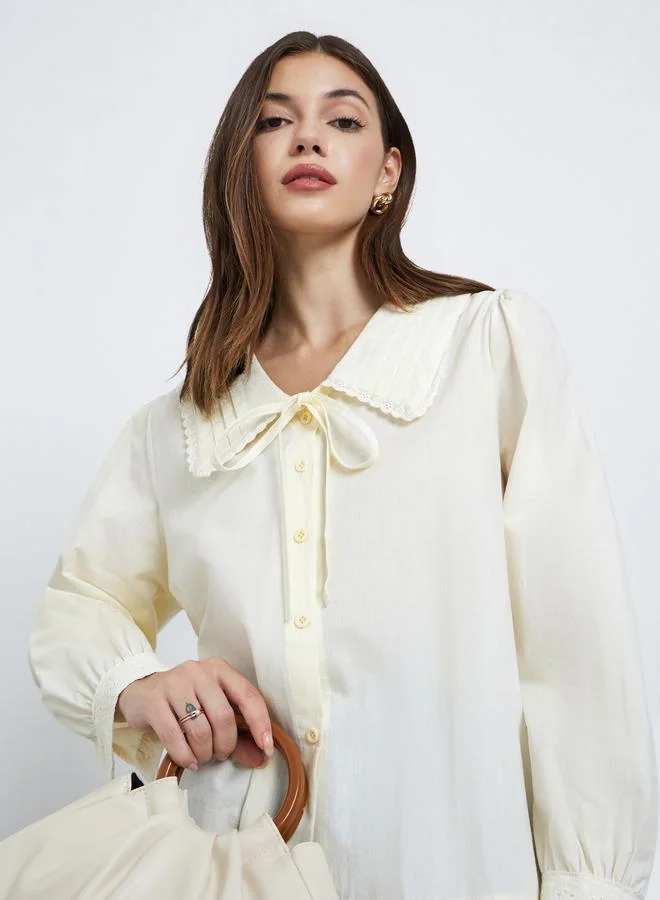 Styli Women Yellow Lace Detail Long Sleeve Shirt with Tie-Up Detail