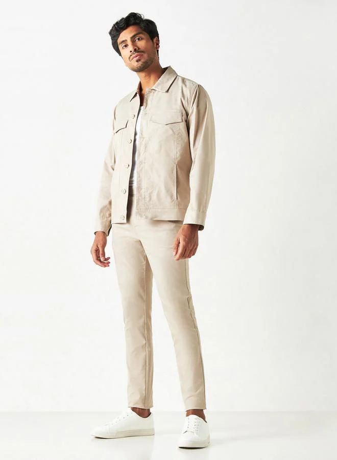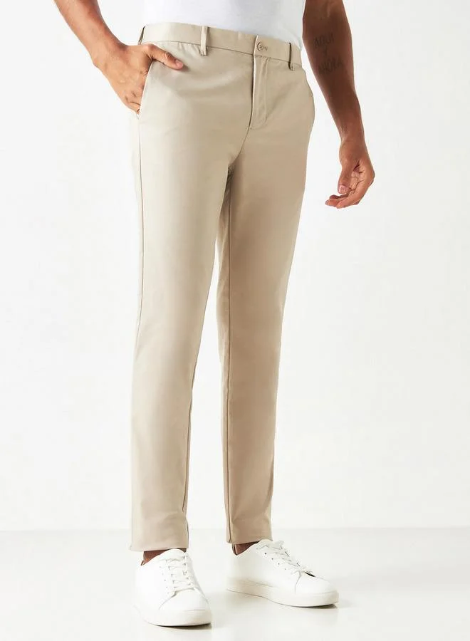 Iconic Iconic Solid Mid-Rise Trousers with Button Closure and Pockets