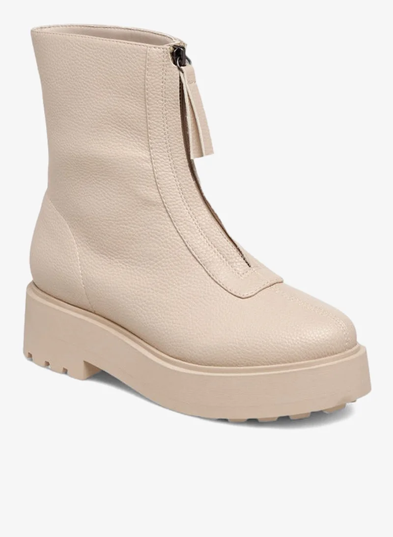 Elevate your footwear collection with these modern ankle boots, designed with a contemporary edge for the fashion-forward individual. These chunky ankle boots feature a distinctive textured upper and a convenient front zip closure, which allows for effortless wear and a secure fit. The robust lug sole provides both a confident lift and reliable traction, making these chunky platform boots a versatile choice for pairing with everything from tailored trousers to flowing dresses.