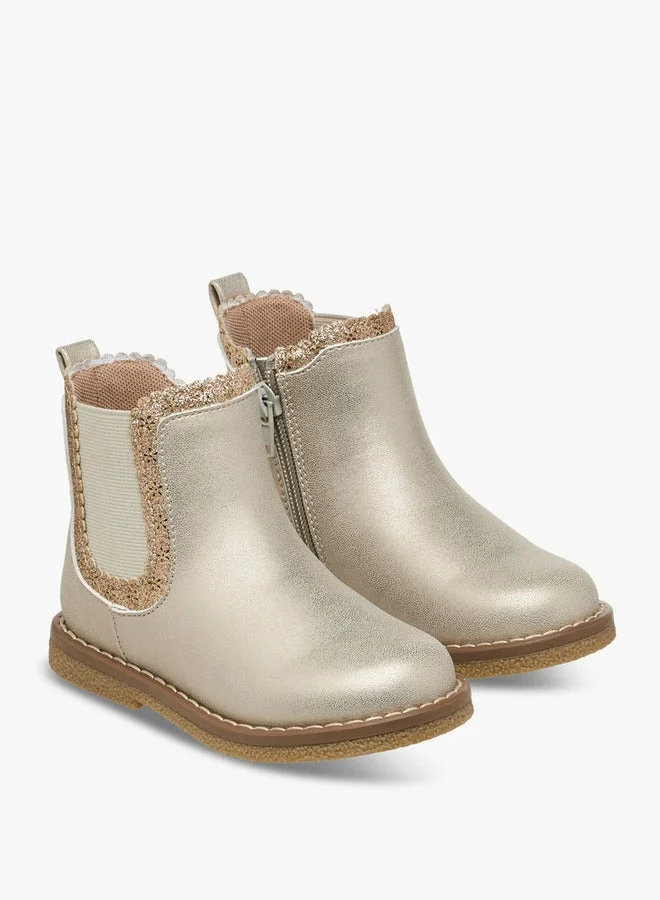 Step out in style with these boots. These chic boots feature eye-catching glitter embellishments that add a touch of sparkle to any outfit, from casual jeans to dressier skirts. Designed for easy wear, the convenient zip closure ensures a secure and comfortable fit, making them perfect for everyday adventures or special occasions.