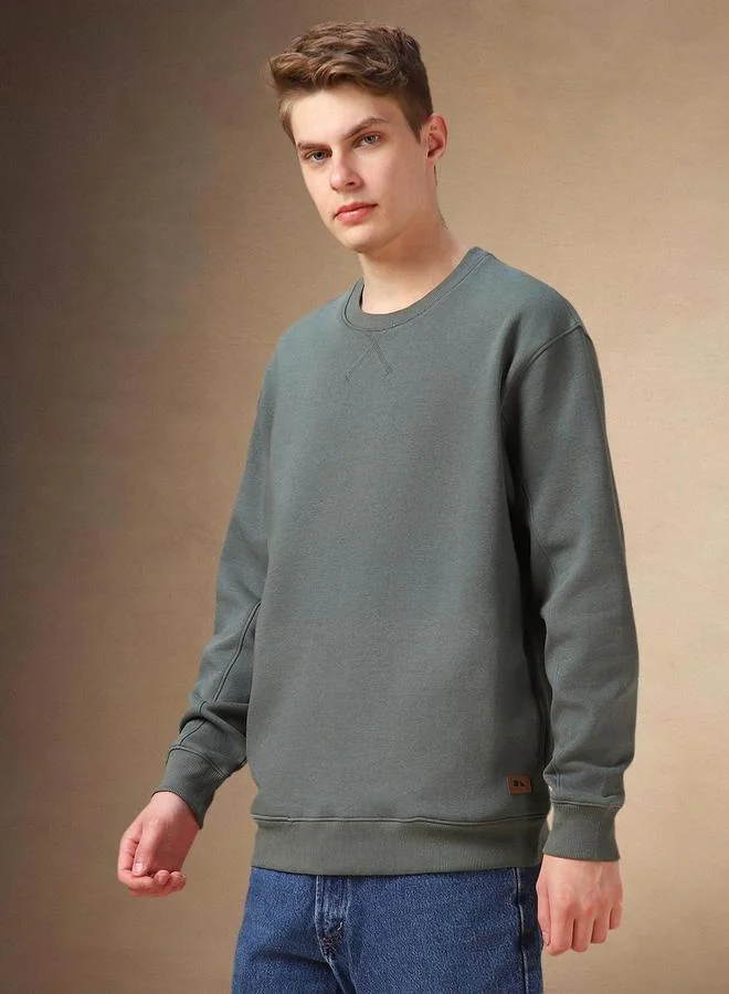 Dennis Lingo Men Olive Green Round Neck Sweatshirt