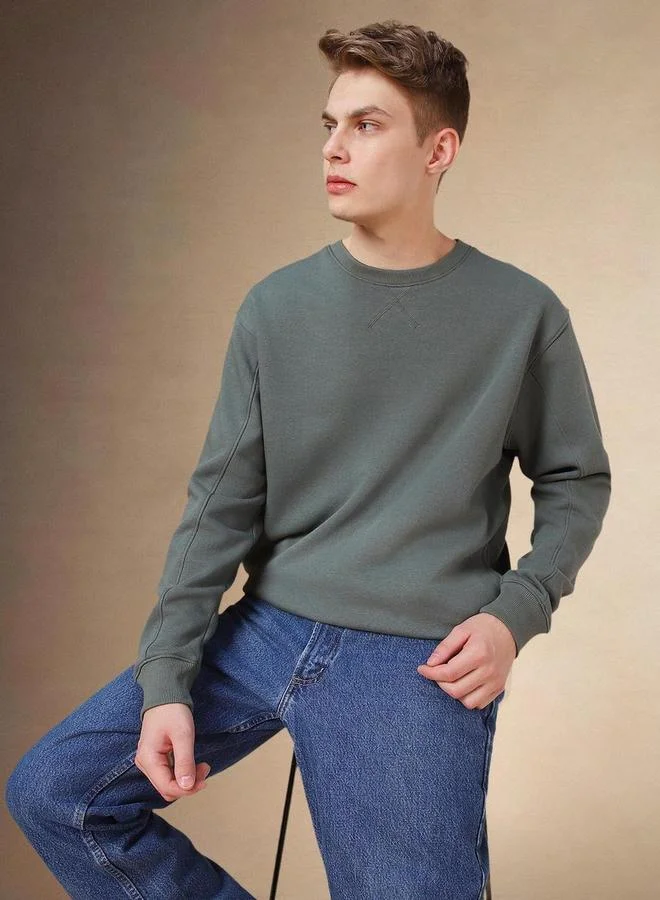 Stay stylish with this olive plain sweatshirt for men. Pullover closure, perfect for casual wear. Shop now!