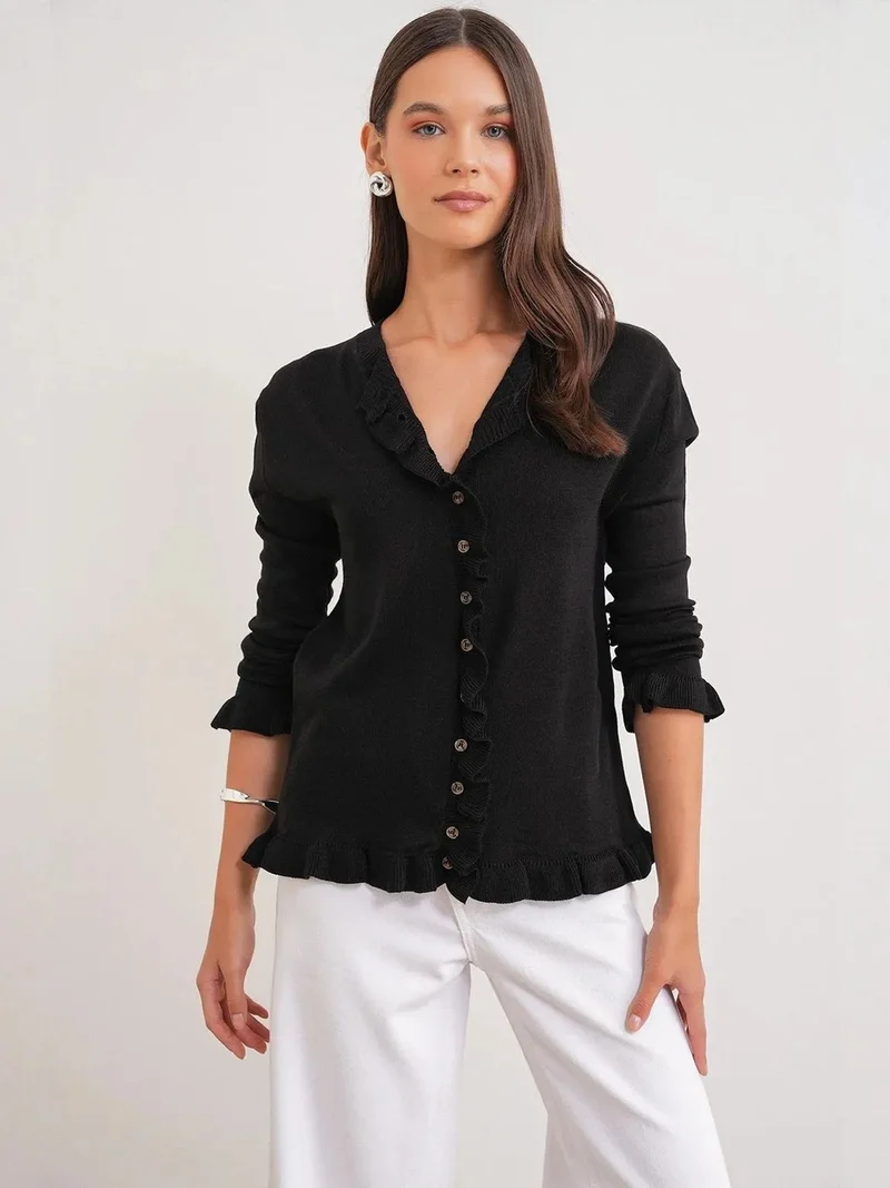 Mixray V-Neck Ruffle Blouse with Drawstring