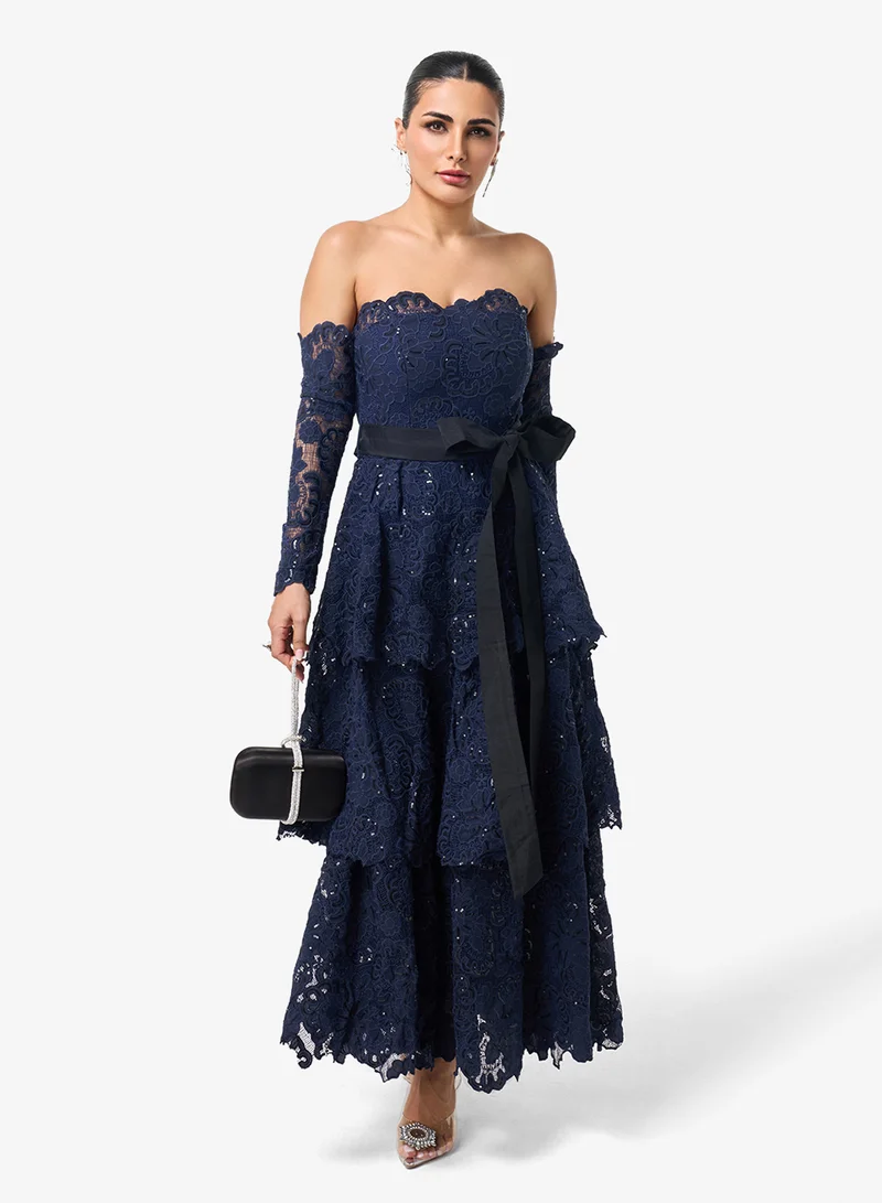 Sweetheart Neck Ruffle Detail Maxi Dress