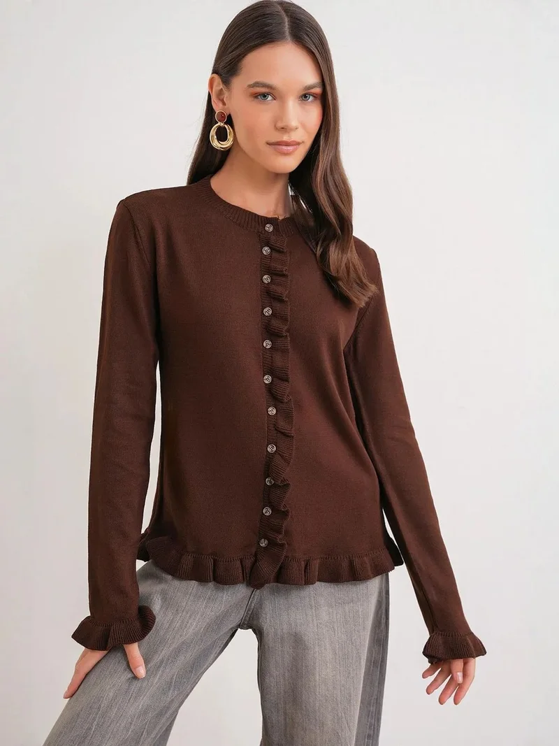 ISTANBUL Textured Ribbed Knit Cardigan with Tie Closure