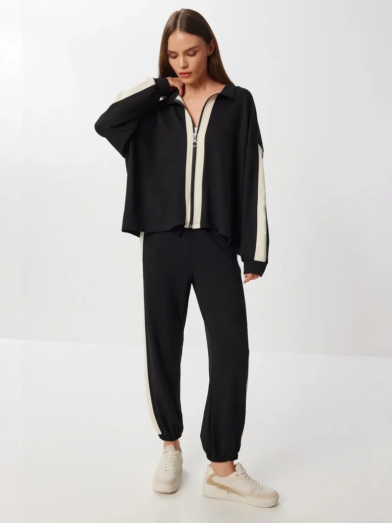 ISTANBUL Contrast Detailed Two-Piece Set with Sweatshirt & Pants
