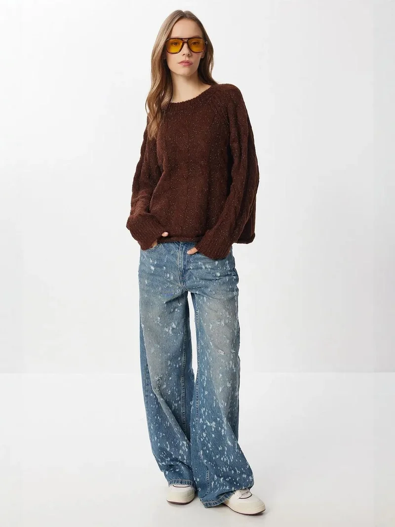 LUCCI Thick Jacquard Knit Cardigan with Button Closure