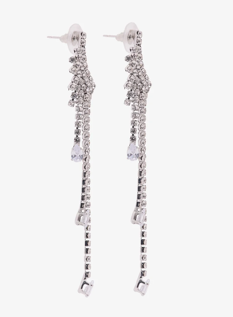 Diamonte Embellished Rhinestone Ear Cuff Detailed Drop Down Earrings Silver