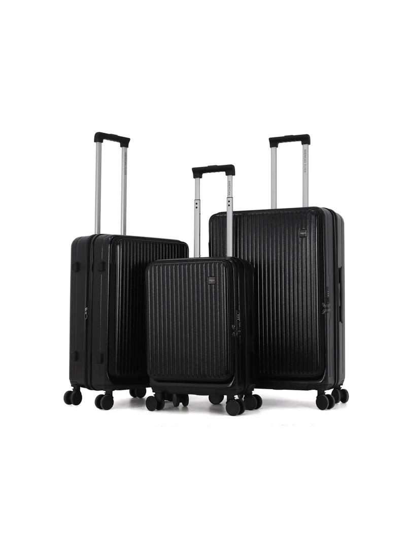 Softside Luggage Trolley Bag 3 Pieces Set,Black (S-20",M-24",L-28")