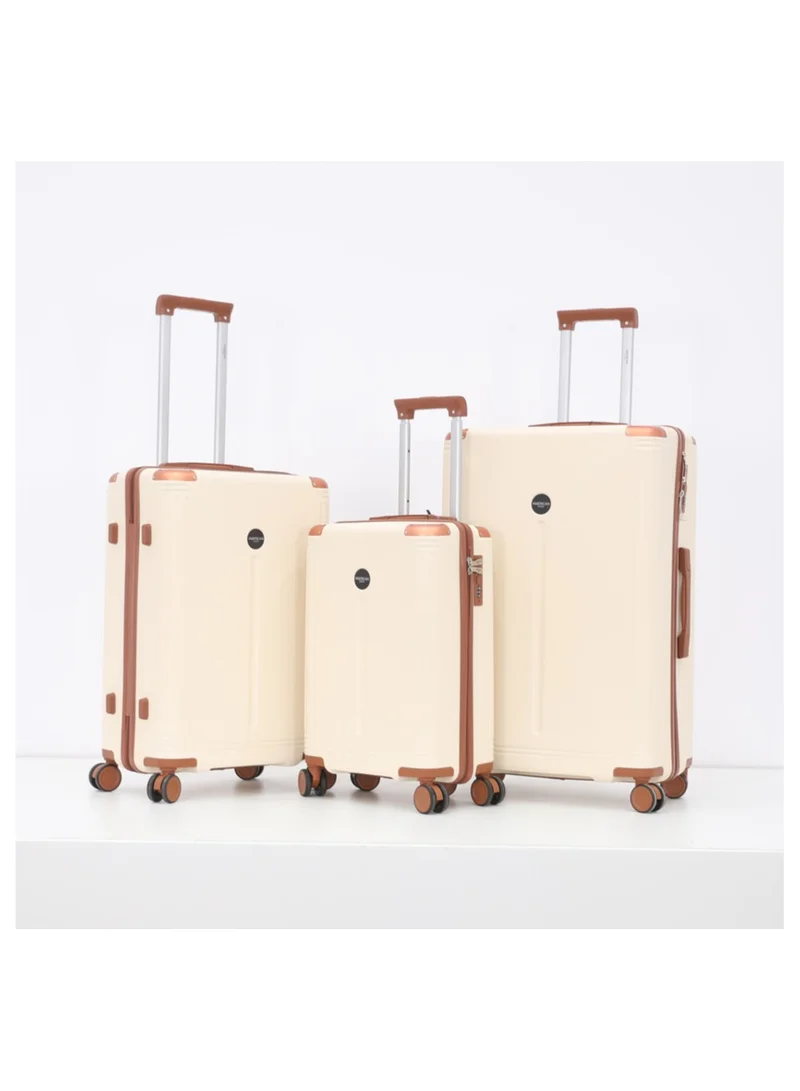 Hardshell Luggage Spinner Trolley Bag 3 Pieces Set,Beige (S-20",M-24",L-28")