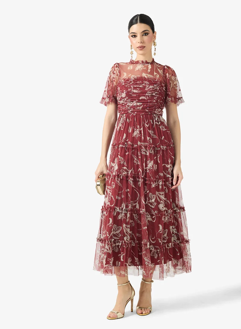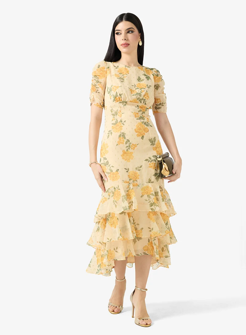 Floral Ruffle Gown Dress