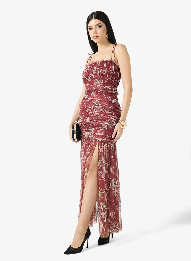 Ruched Tulle Maxi Dress
