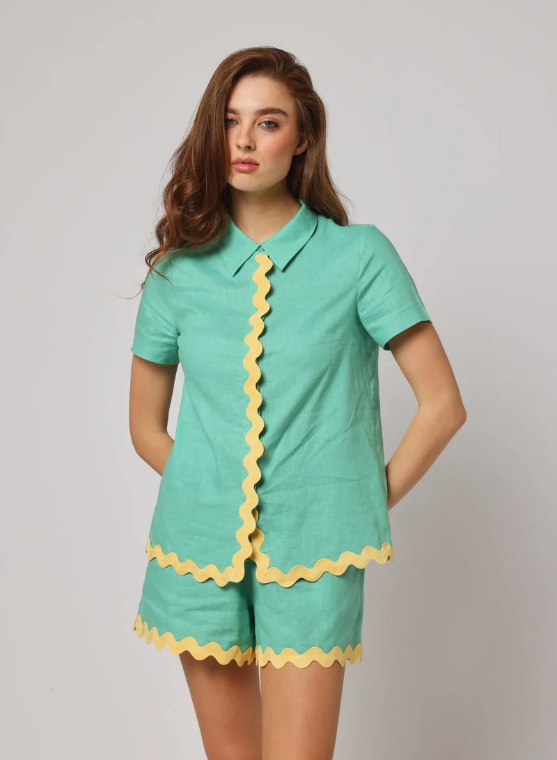 Scalloped Trim Linen Blend Shirt