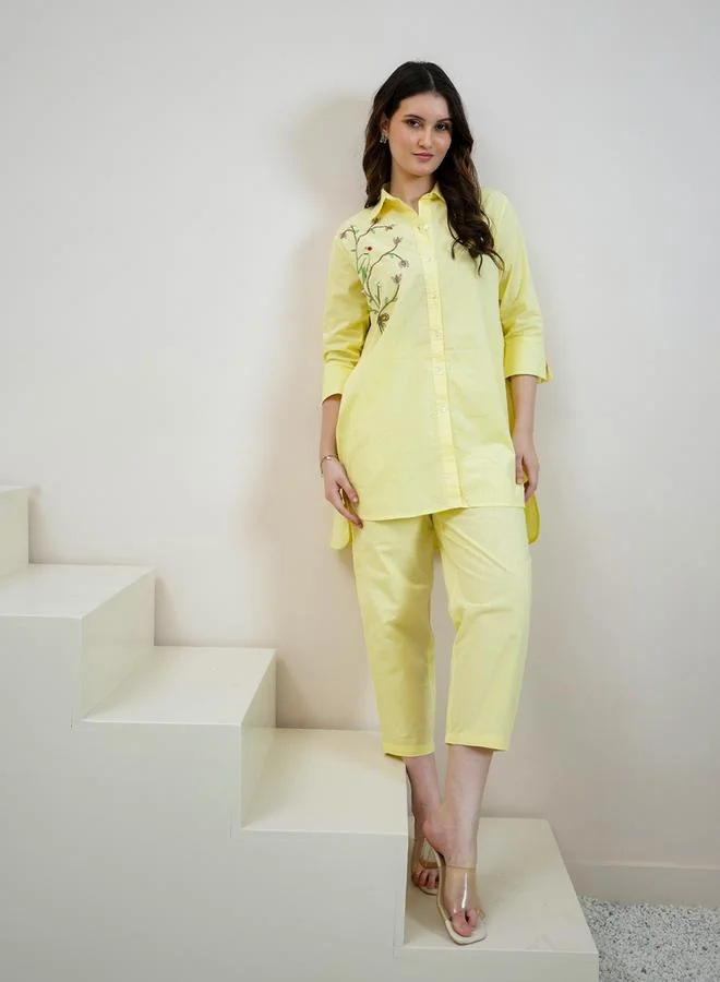 Yellow Cotton Beaded Shirt and Pants Co-ords