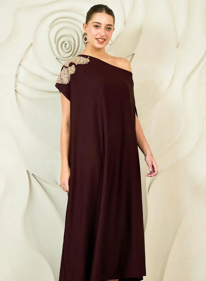 Maroon Embroidered Sequin Kaftan Maxi Dress