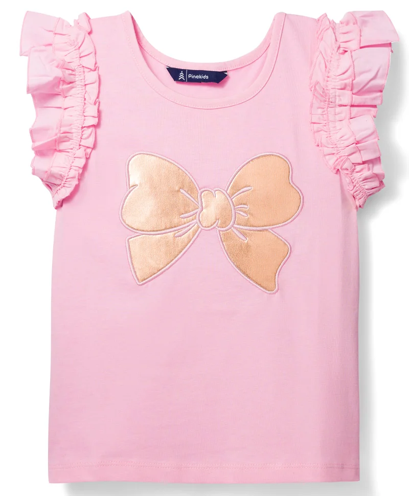 Pine Kids Cotton Knit Frill Sleeves Top With Butterfly Embroidery - Pink
