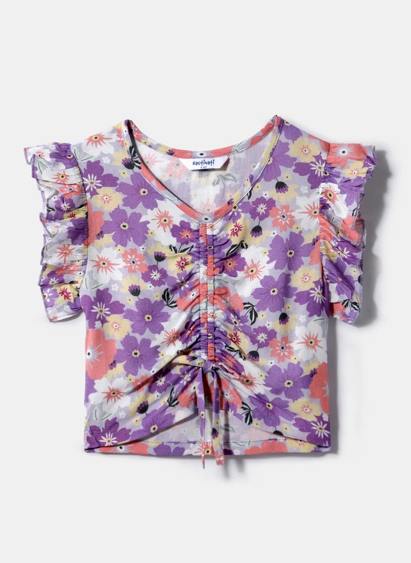 Nautinati Purple Printed Top for Girls