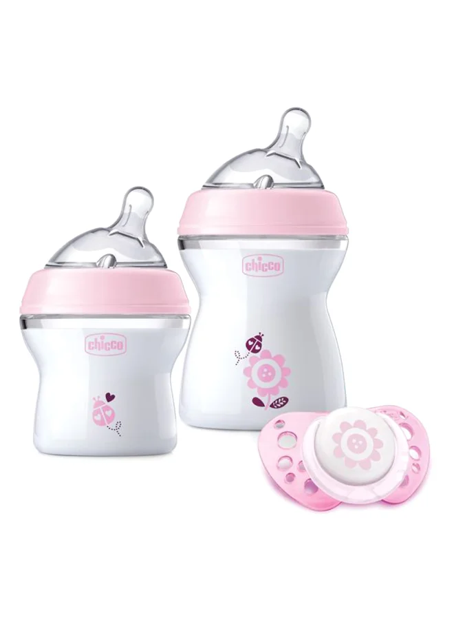 Natural Feeling First Gift Set + Pink, 2 Pieces Feeding Bottles & 1 Piece Soother