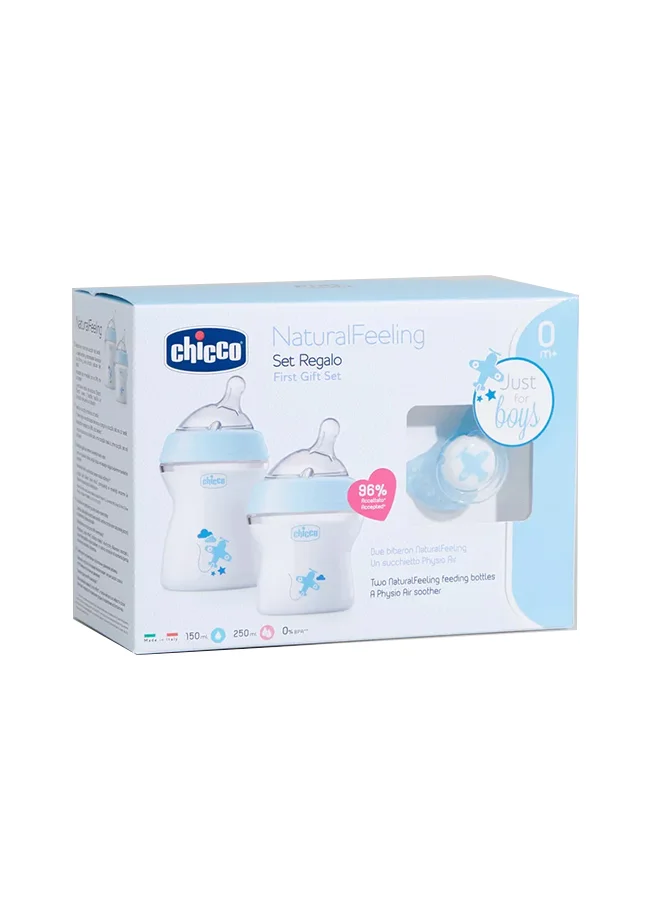 2 Pieces - Natural Feeling First Gift Set 0m+ -Feeding Bottles & 1 Piece Soother - Clear/Blue