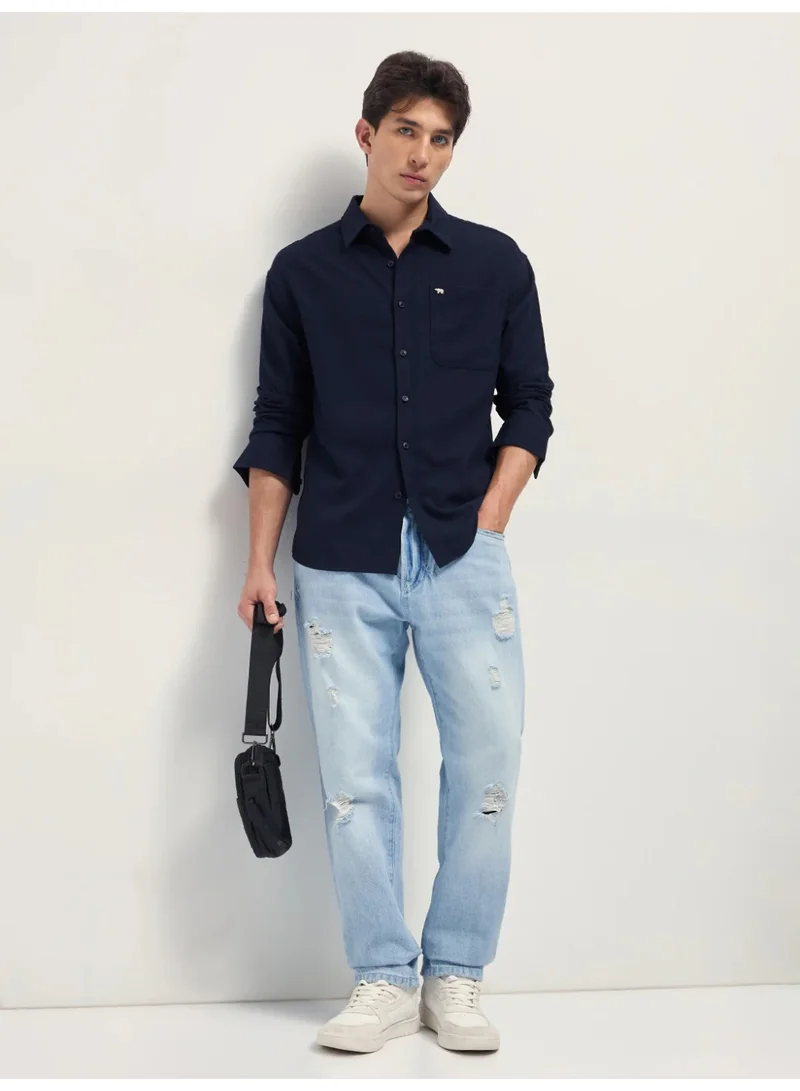 Men's Blue Heavy Distressed Denim Jacket For Casual Wear | Spread Collar | Long Sleeve | Button Closure | Jacket Crafted With Comfort Fit For Everyday Wear