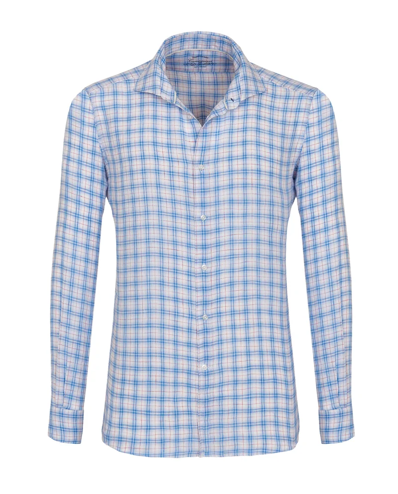 Classic Light Blue Checked Twill Extra Slim Fitted Shirt
