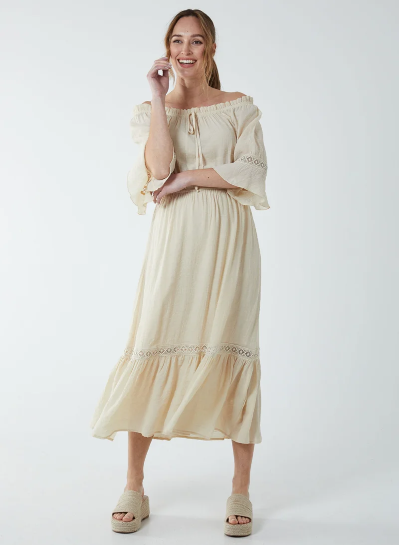 Nautinati Girls Cotton Striped Woven Top with Shirring Details