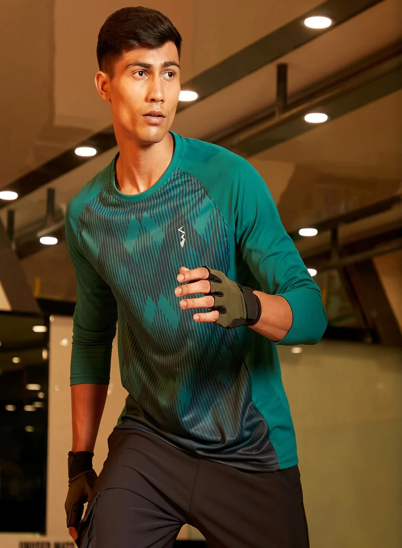 Men's Green Printed Dri-Fit Long Sleeve Regular Fit Activewear T-Shirt For Casual Wear | Modern Clothing T-Shirt Crafted With Comfort Fit And High-Performance For Everyday Wear