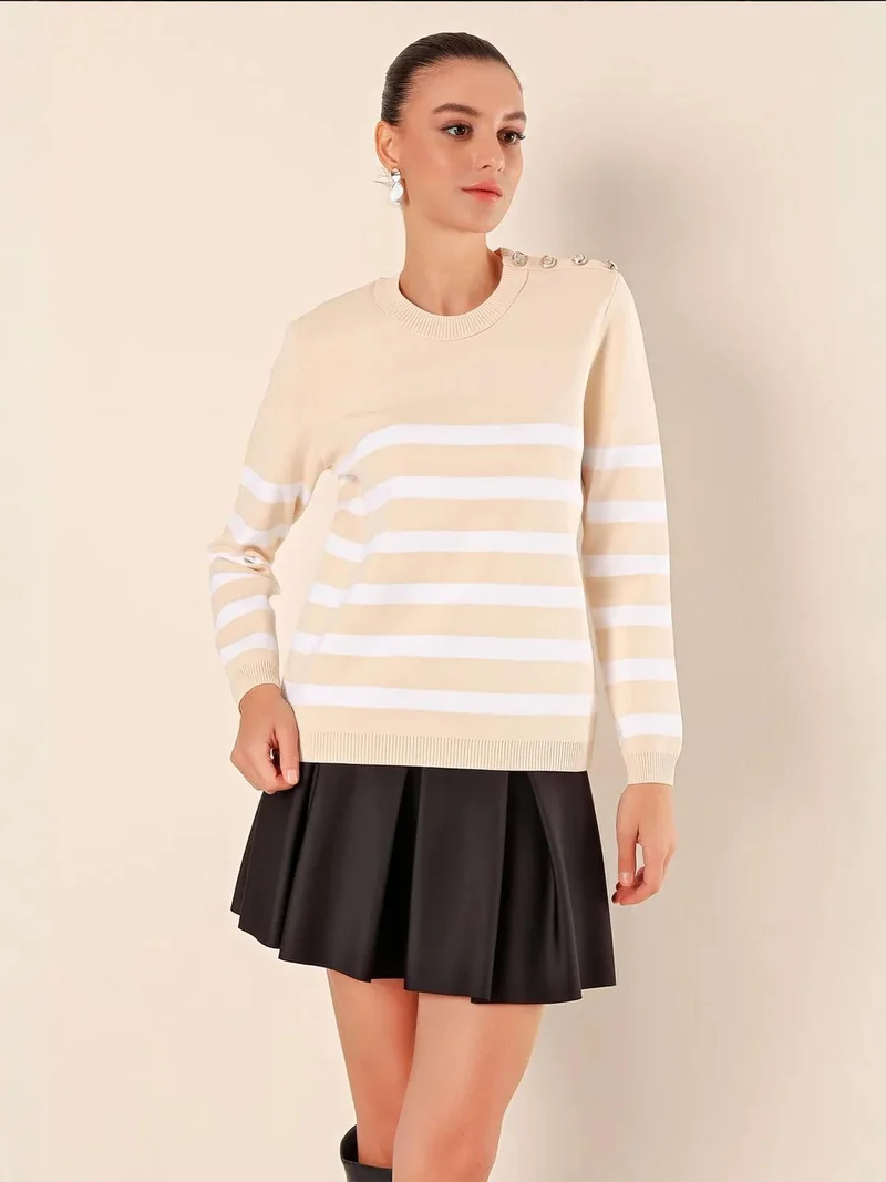 LUCCI Textured V-Neck Cropped Cardigan with Pompom