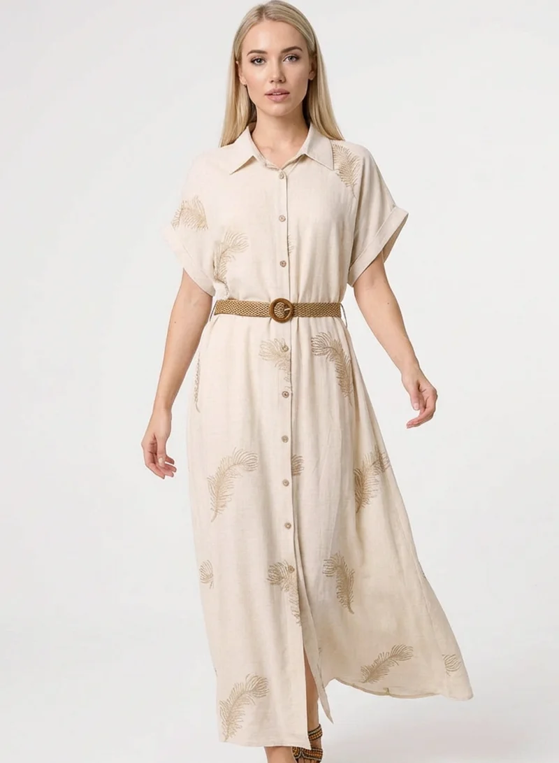Dress With Brushstroke Leaf Print