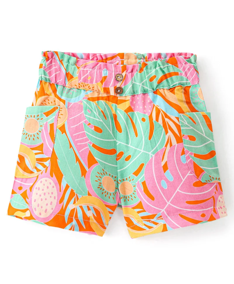 Bonfino Viscose Paperbag Shorts with Leaves Print - Multicolor