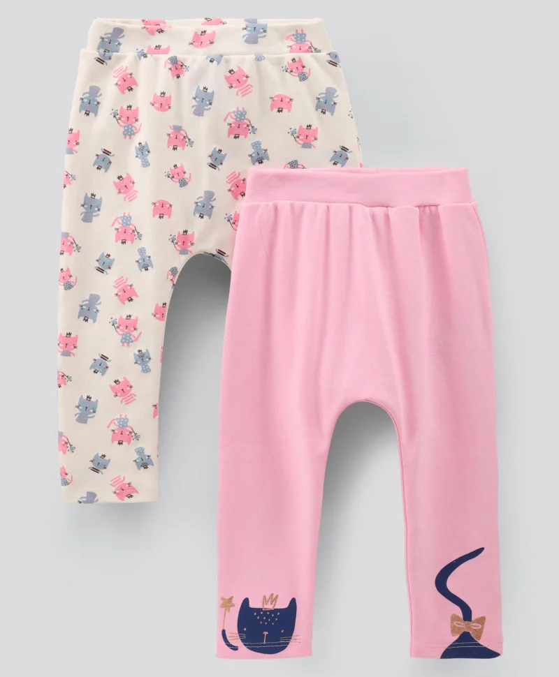 Bonfino Cats Printed Diaper Leggings - Pack of 2