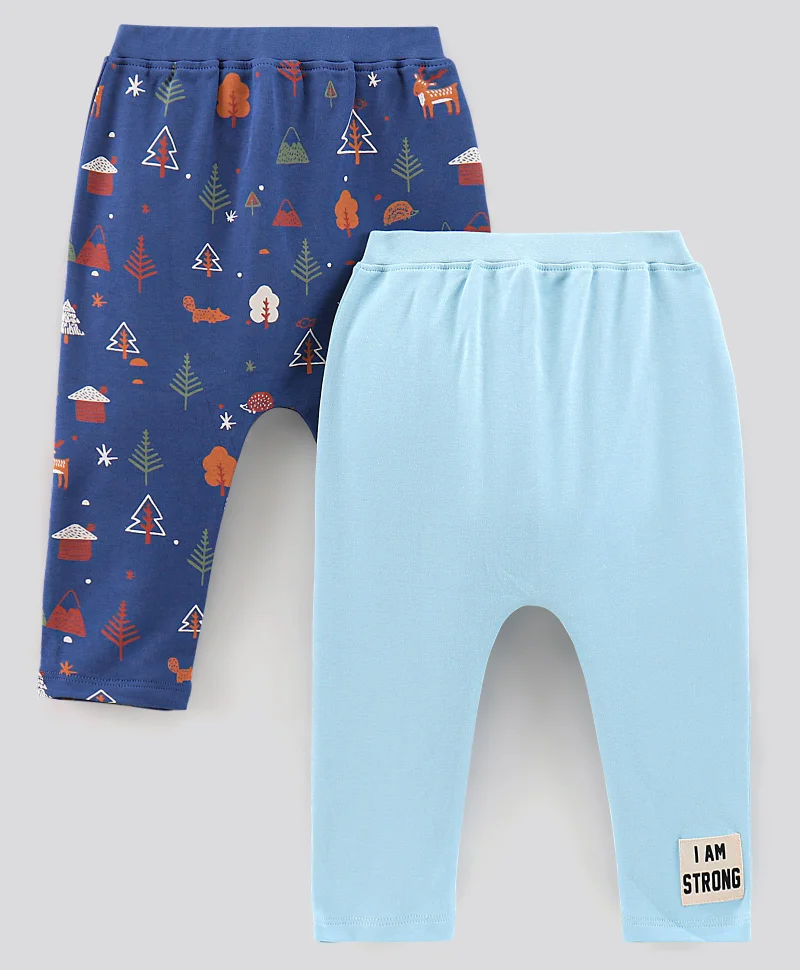 Bonfino Cotton Knit Ankle Length Tree & Text Printed Diaper Legging Pack Of 2 - Blue