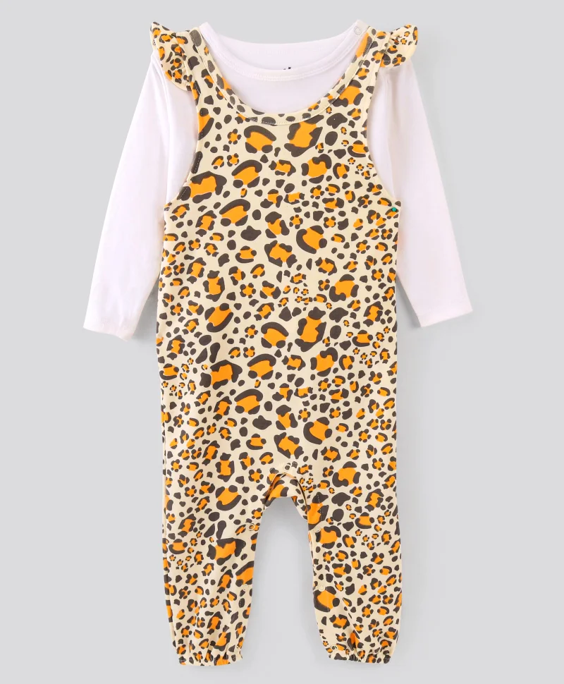 Bonfino 100% Cotton Knit Sleeveless Frock With Bloomer Cheetah Print - Pink