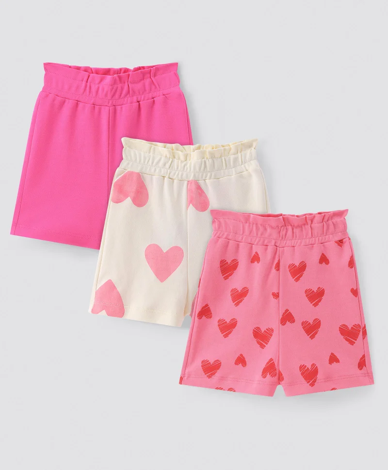 Bonfino Girls 100% Cotton Printed Shorts Pack Of 3 - Multicolor