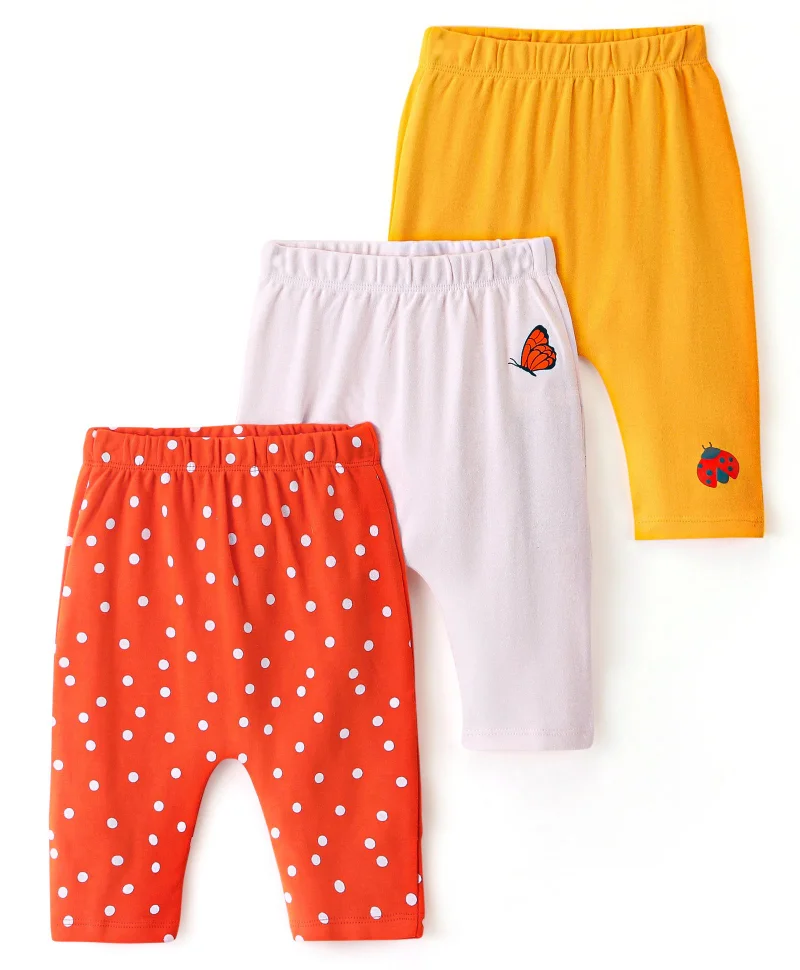 Bonfino Interlock 100% Cotton Diaper Legging Set Polka Dot Print Pack of 3 - Orange Off White & Yellow